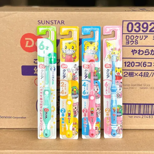 SUNSTAR - bàn chải răng cho bé từ 6 tháng - 2 tuổi giúp chăm sóc răng cho bé với thiết kế sợi mềm giúp loại bỏ mảng bám mà không làm tổn thương hoặc đau răng, lợi, dễ cầm với thiết kế chống trượt trượt.