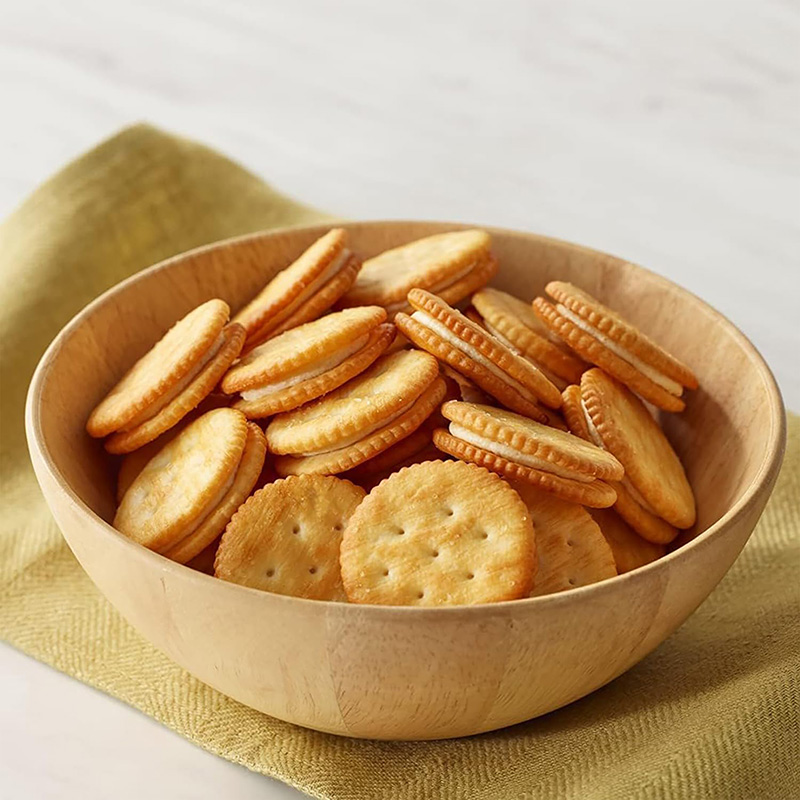 - Bánh Quy Ritz Nhân Phô Mai với công thức truyền thống và trên dây chuyền sản xuất công nghệ hiện đại đem đến hương vị thơm ngon và hấp dẫn, phù hợp với nhiều khẩu vị.