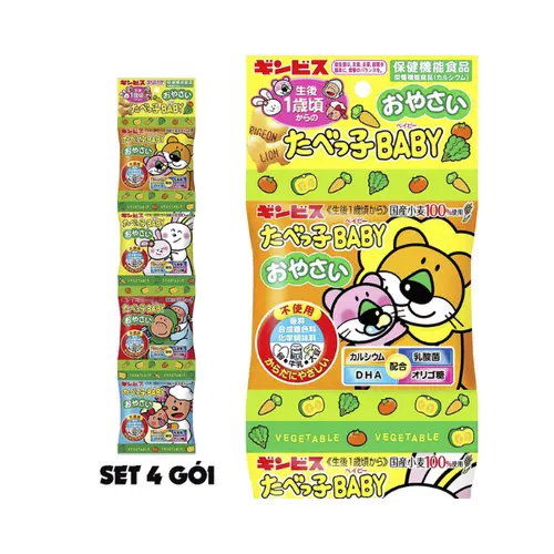 - Bánh ăn dặm hình thú Ginbis được nhập khẩu trực tiếp từ Nhật Bản với tiêu chuẩn sản xuất nghiêm ngặt về sinh sinh an toàn đặc biệt là khâu kiểm nghiệm chất lượng đảm bảo bé có những bữa ăn dinh dưỡng và an toàn.