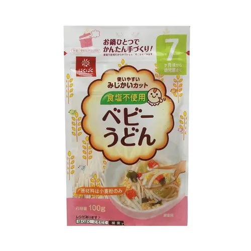 - - Unsalted Hakubaku Udon Noodles for Babies 7M 100g is made from wheat flour, providing fiber, vitamins and minerals to help babies easily absorb and digest well. Mothers can cook noodles for breakfast or snack for their baby to change the taste.