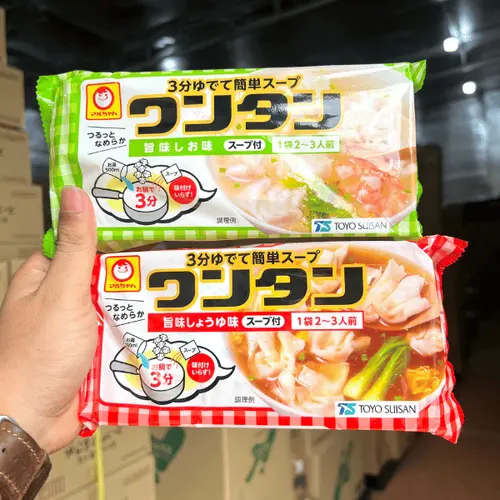 - Hoành thánh Toyo Suisan gồm có vị: tôm, thịt và gà rau củ.