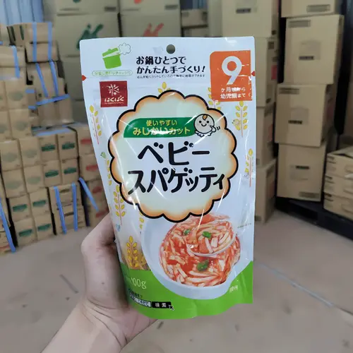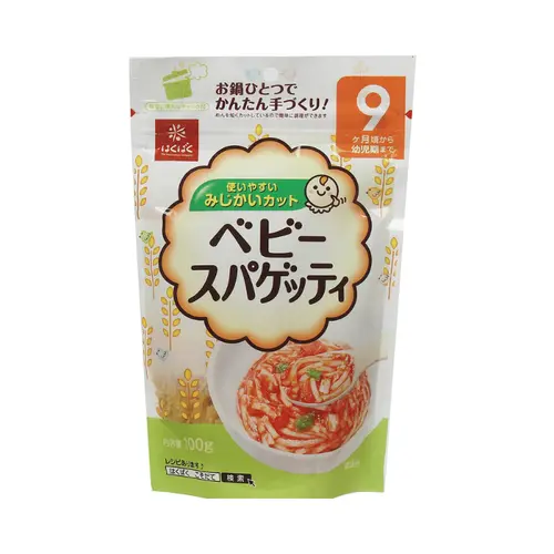 離乳食に使いやすく、約2.5cmに短くカットしたスパゲティ(9ヶ月頃から)です。お好みの野菜スープやダシ、具材と一緒に煮込み、お鍋ひとつで簡単に調理できます。9ヶ月頃から12ヶ月以降の幼児期まで、幅広く使えます