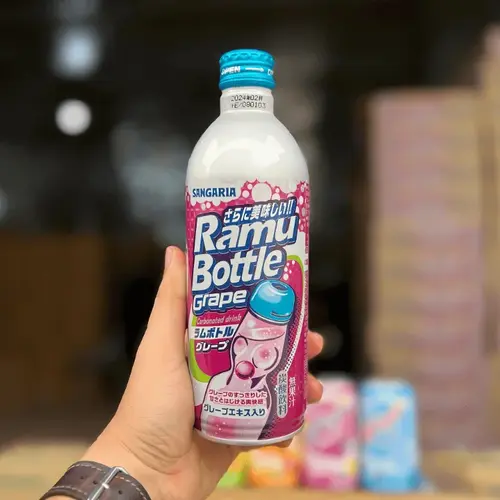 爽快炭酸グレープラムボトル!グレープの風味と炭酸がバランスよく口の中に広がります。また、すっきりとした後味と爽快感をお楽しみ頂けます。