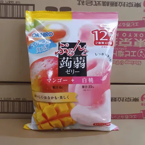 [オリヒロプランデュ]ぷるんと蒟蒻ゼリーパウチ マンゴー白桃 12個入りx1個