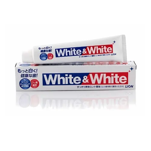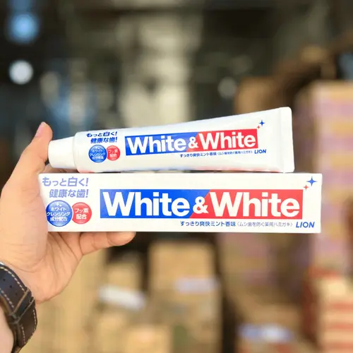 - Kem đánh răng white and white lion là loại kem đánh răng được sử dụng thông dụng ở Nhật, nhiều bọt với hương thơm mát dễ chịu, không tạo cảm giá ê buốt khi đánh răng