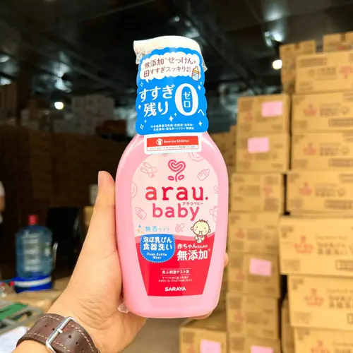 - Nước rửa bình Arau Baby giúp đánh bay các vết vết vàng, rung sữa và mùi hôi khó chịu trên bình sữa của bé. Nước rửa bình sữa Arau Baby là sản phẩm xuất xứ từ Nhật Bản với 100% thành phần thiên nhiên không chứa hương liệu, chất bảo quản,.. không làm nhiễm độc công thức ăn của bé, đảm bảo an toàn khi sử dụng. Lớp bọt của nước rửa bình sẽ làm sạch và cuốn trôi bụi bẩn, thức ăn và vi khuẩn chỉ trong vài giây.