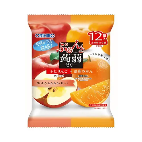 - Thạch trái cây Orihiro vị táo Fuji và quýt Unshu là món ăn nhẹ thơm ngon, tiện lợi, được chế biến từ nguyên liệu konnyaku với hàm lượng nước trái cây phong phú.
